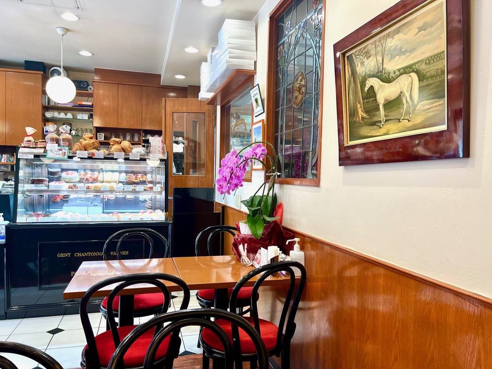 店内にはイートインの喫茶スペースがあり、コーヒーや紅茶とともに、ショーケースのケーキをいただくことができます。