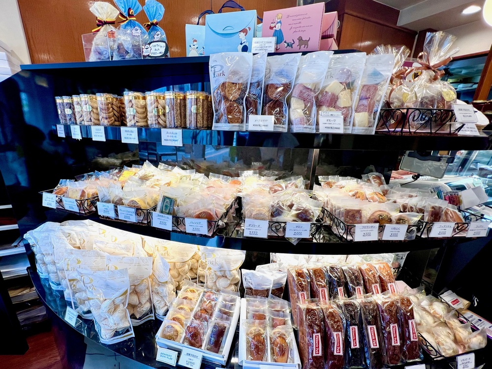 店内を見させていただくと、ケーキだけではなく焼き菓子コーナーの充実ぶりに驚きます。自宅用としてはもちろん、ちょっとした贈り物に喜ばれそうですね。