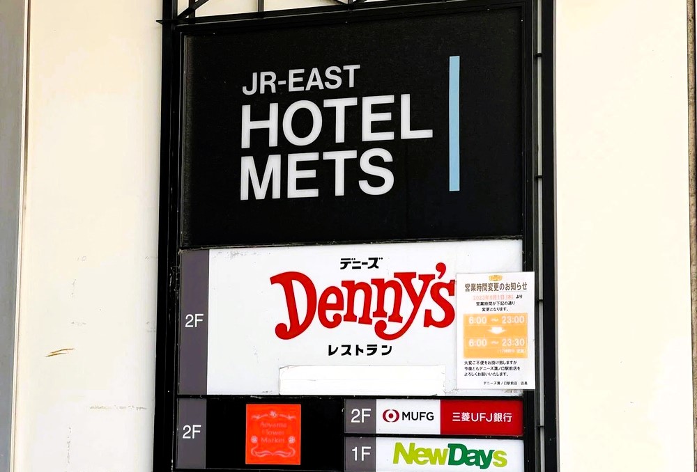 その秘密はここにあります。実はこのデニーズ、駅直結の「JR東日本ホテルメッツ 溝ノ口」の2階に位置しているのです。