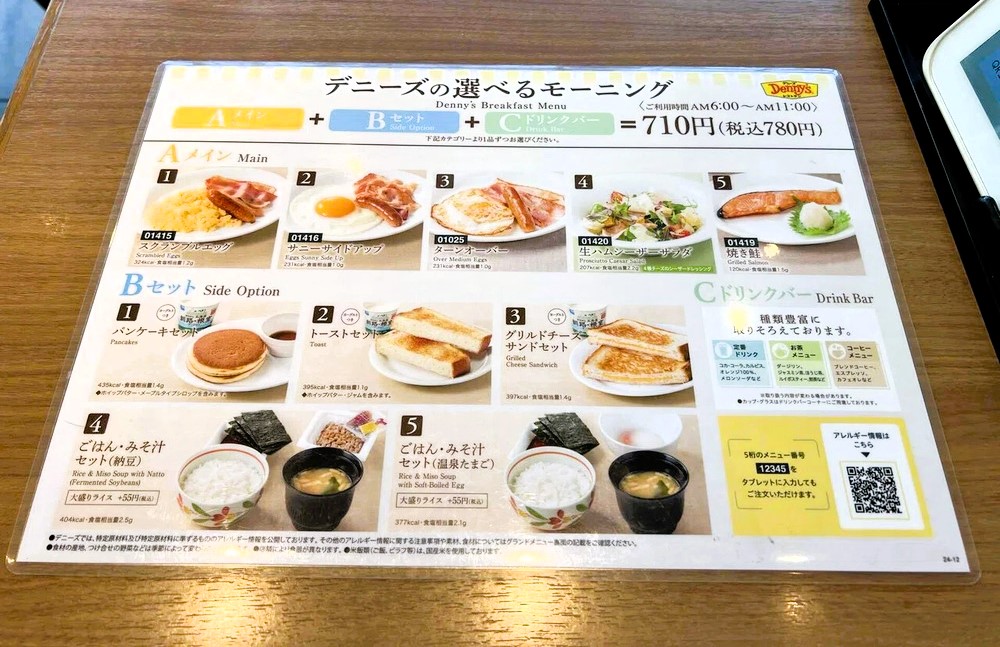 席に着くと、まず目に入ったのは「デニーズの選べるモーニング」のメニュー。