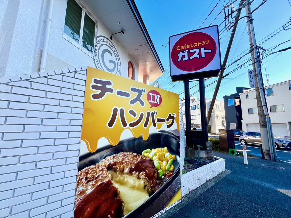 ガストの代名詞といってもいい、チーズINハンバーグの大きな看板に、さっそく食欲がそそられます。