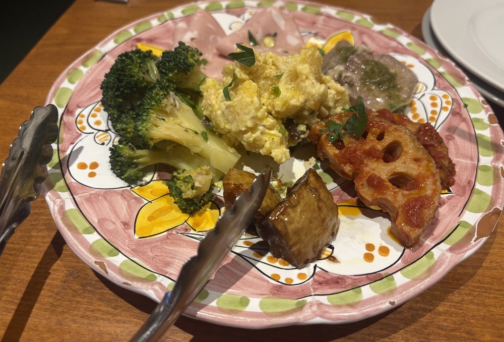 どの前菜もおいしかったのですが、特に印象に残ったのは、レンコンにトマトソースを詰めた一品です。レンコンの食感とトマトソースのうまみがよく合い、おいしかったです。