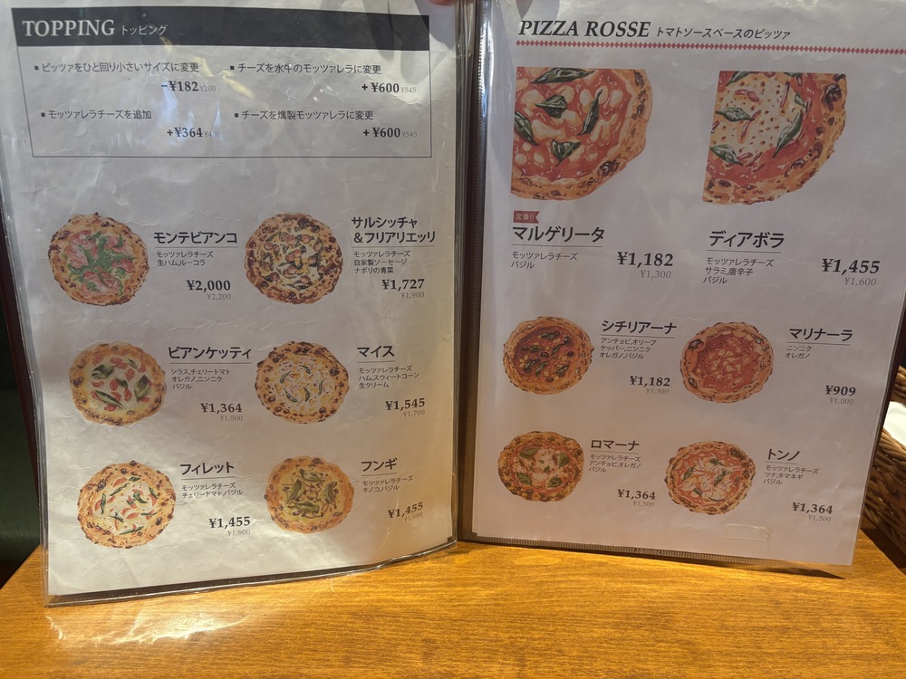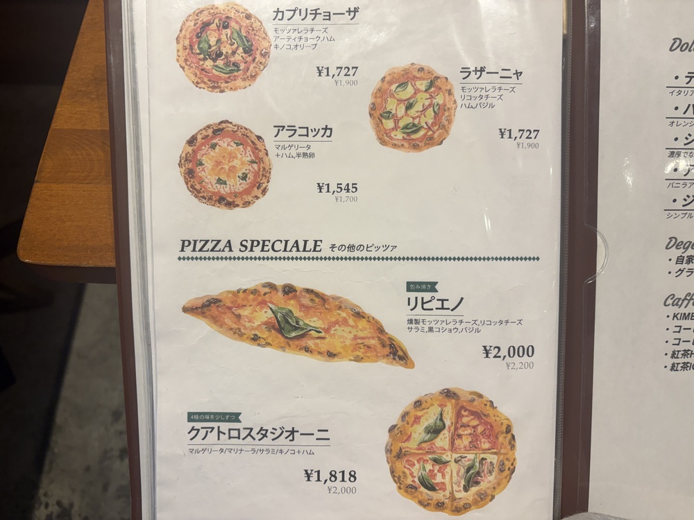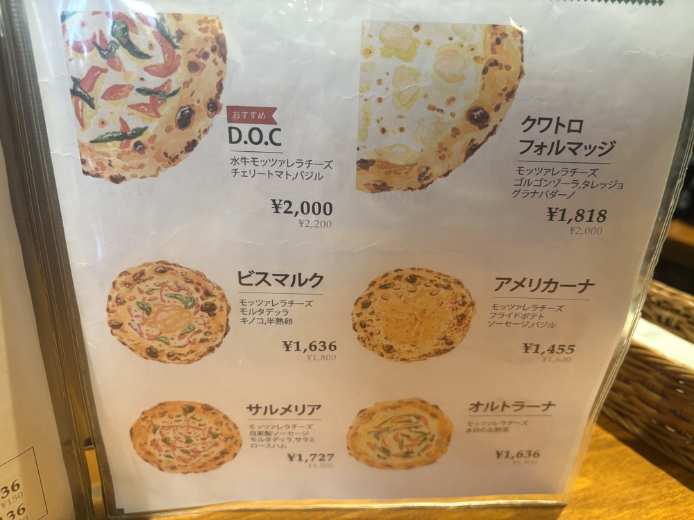 メニュー表にはイラスト付きでピザの特徴が紹介されていて、とても分かりやすい印象でした。