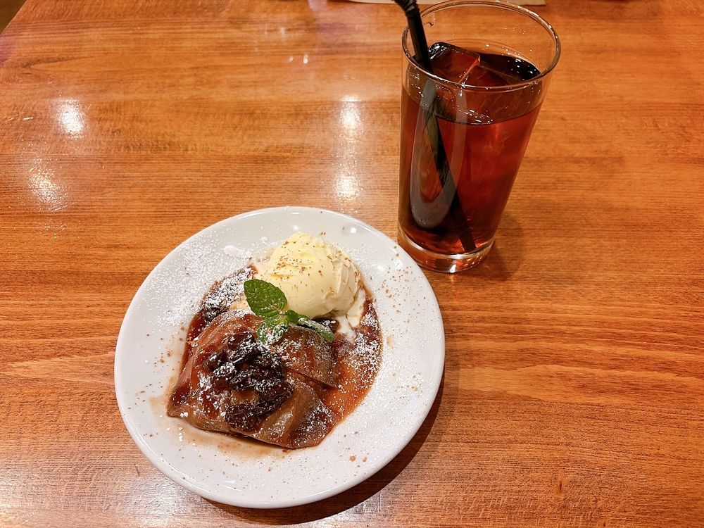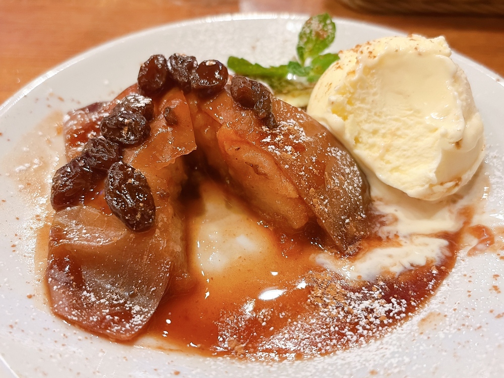 ここのアップルパイは皮まであるので、りんごをまるまる感じられる、幸せなデザートです。