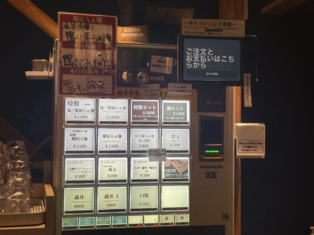 入店すると、右側に食券機があり、こちらからメニューを選択するシステムです。キャッシュレス決済も可能ですので、現金を持たない方でも安心して注文できます。