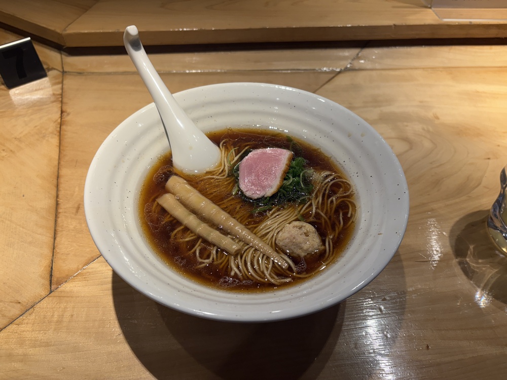 キラキラと透き通った鴨だしベースのスープをひと口飲むと、鴨の芳醇な旨味が口いっぱいに広がります。
