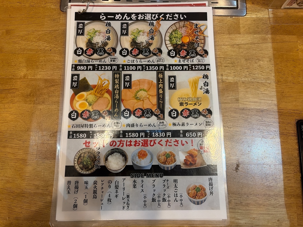 ラーメン単体でも十分満足できるボリュームですが、ご飯ものやサイドメニューを組み合わせることで、より充実した食事にすることができます。しっかり食べたい日や、少し贅沢したい気分のときにもぴったり。