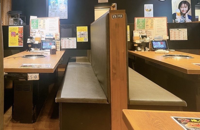 席同士の間隔もゆったりしているため、ひとり焼肉でも気兼ねなく過ごせます。