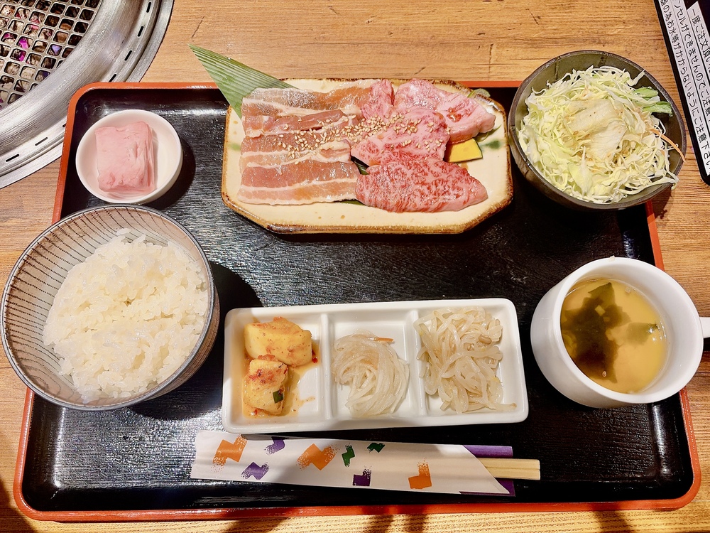 内容は時期や仕入れによって変わりますが、山形牛を中心とした上質なお肉の盛り合わせに、ご飯、スープ、サラダ、キムチなどが付く充実のセットです。