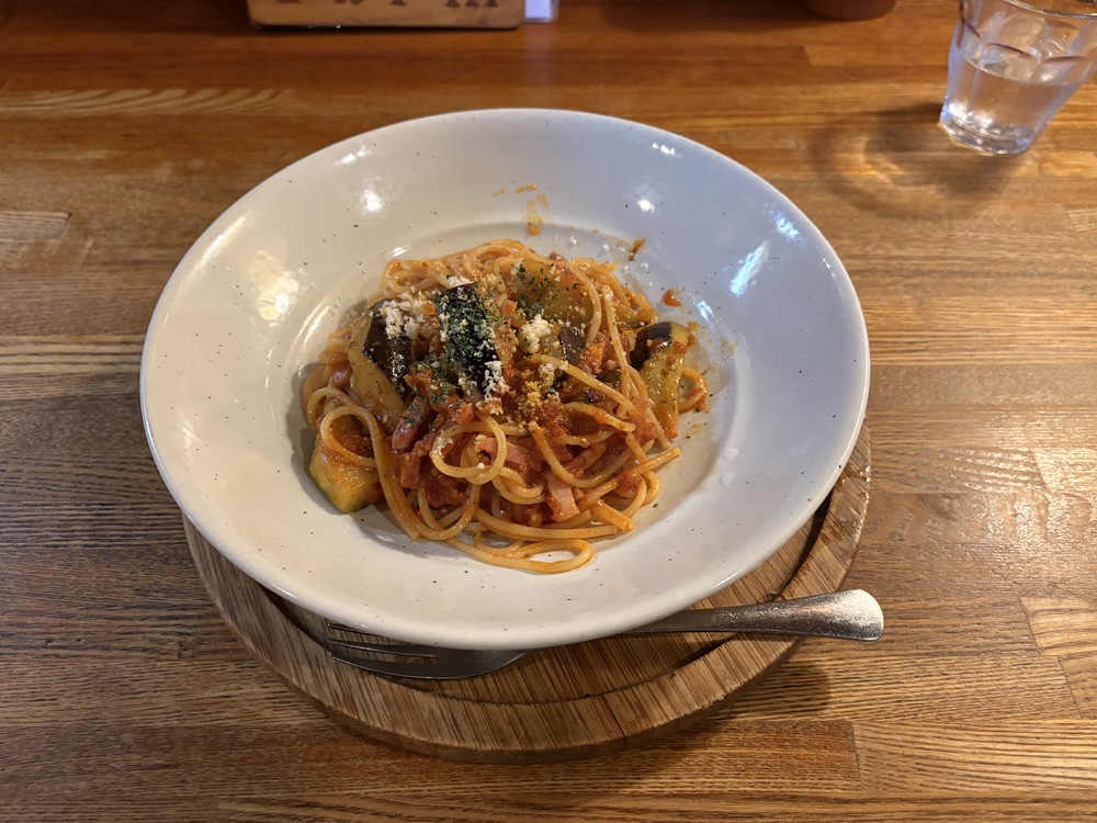 アルデンテにゆでられたパスタに、ナスとベーコン、ミートソースがしっかり絡まっていて、口に入れるたびに素材のうまみが広がります。家庭では味わえない、本格的な一皿であり、こちらのメニューもおすすめです。