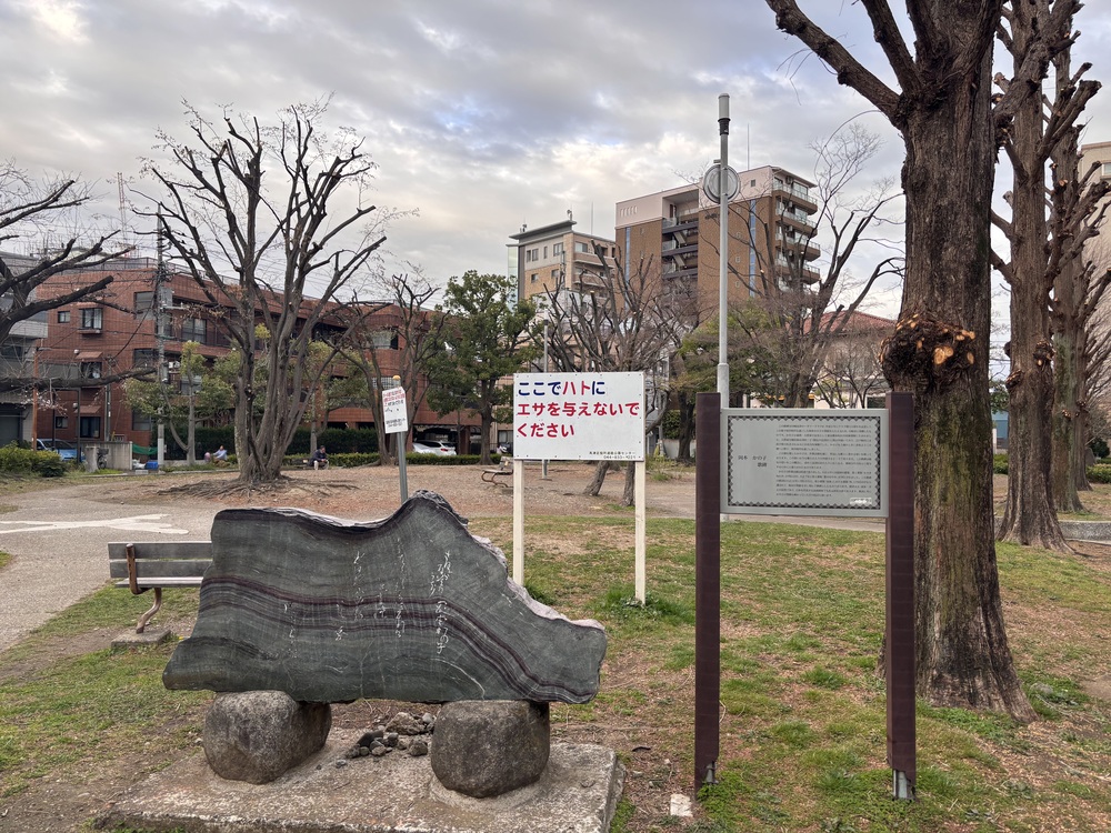 木々の中に静かにたたずむ歌碑を見ていると、この場所が街の文化や記憶を受け継いでいるように思いました。