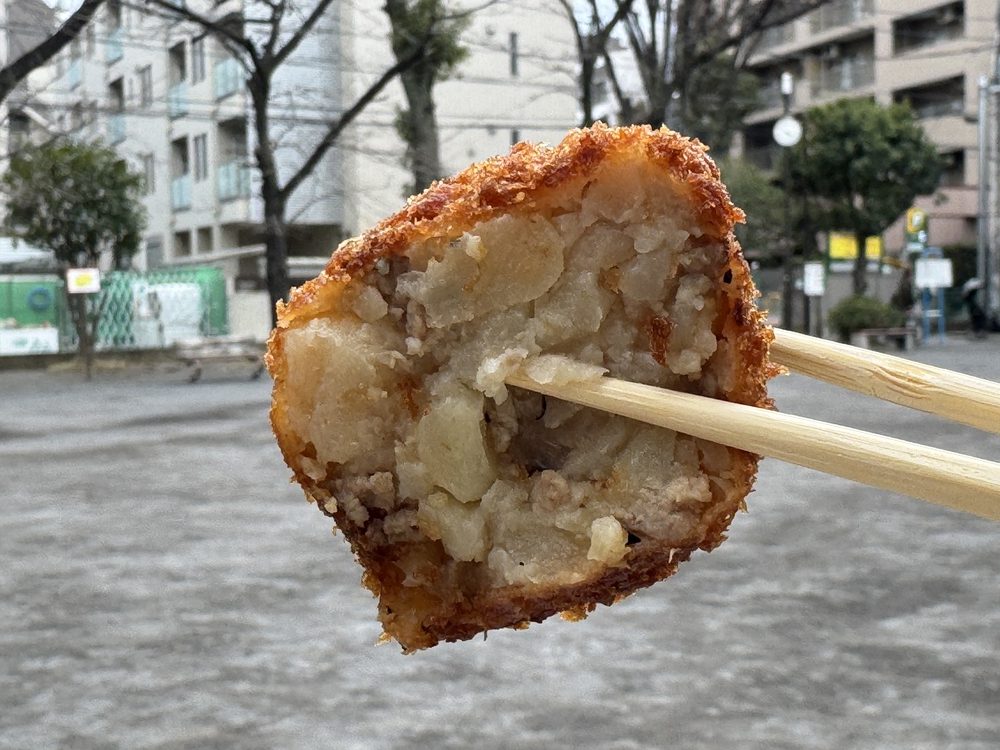コロコココロッケは、醤油ベースの味付けがしっかりとついていて、食べごたえ十分。