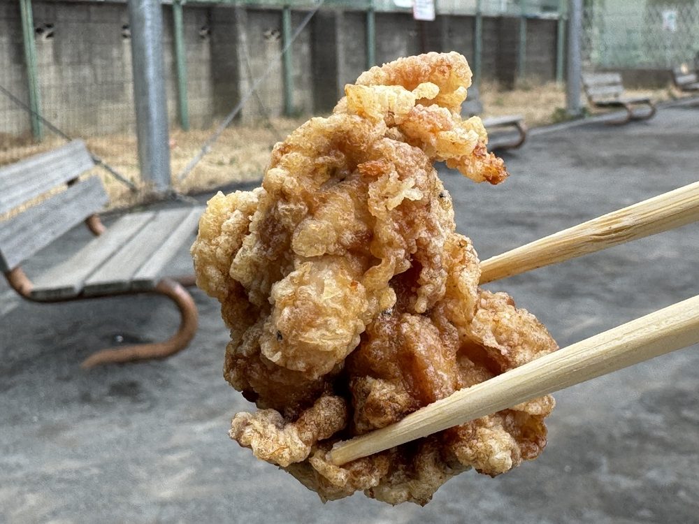 コロッケのボリュームに満足しつつ、次はからあげをいただきました。