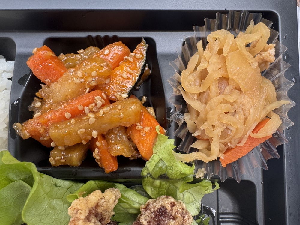 色鮮やかな5種やさいの根菜きんぴらは、さつまいも・かぼちゃ・ごぼう・にんじん・大根が入っていて、食感の違いを楽しめます。