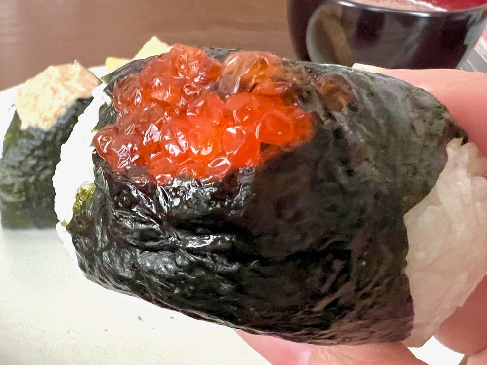 いくらは素材そのものだけでなく、漬けダレでも味の印象が大きく変わる食材ですが、おにぎりによく合う、塩かげんのちょうどよいいくらでした。