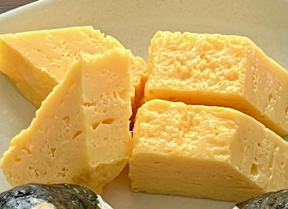 お寿司屋さんの玉子焼きもなめらかでおいしい!自宅では作れない、ていねいな仕事を感じます。