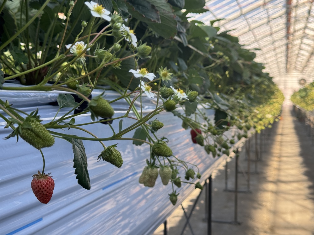 こちらのハウスで栽培されているのは、紅ほっぺと白いちご。