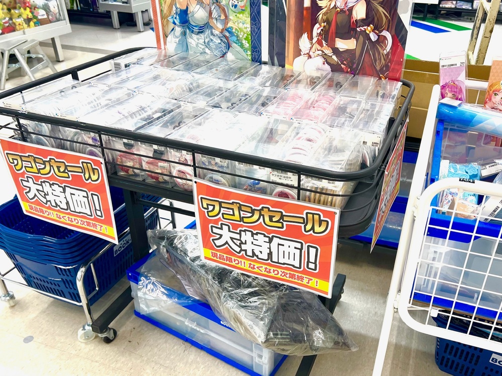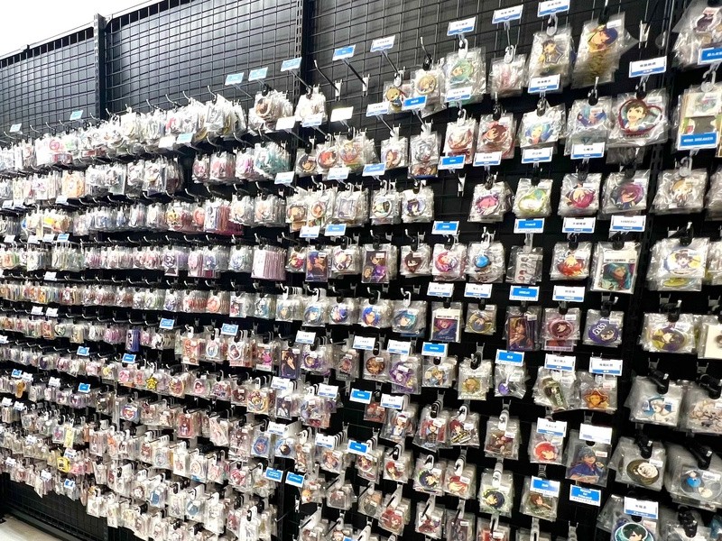 人気作品のフィギュアやキーホルダー、ぬいぐるみ、缶バッジなど、さまざまなアイテムが圧巻のボリュームで並んでいます。