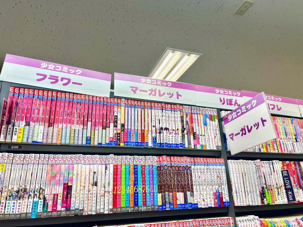 そして、コミックも大充実。雑誌のレーベルごとに並んでいるためわかりやすく、人気作品のまとめ買いコーナーなどもありました。