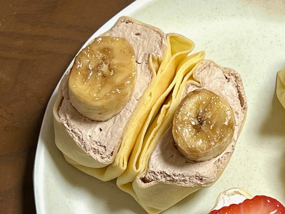 クレープ生地もまた、バナナとクリームを包み込んでうまく調和しています。