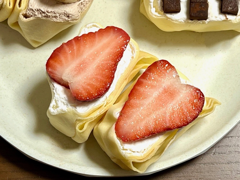 片手で持って、気軽にパクッと食べられるのがクレープサンドウィッチの特徴なのです。
