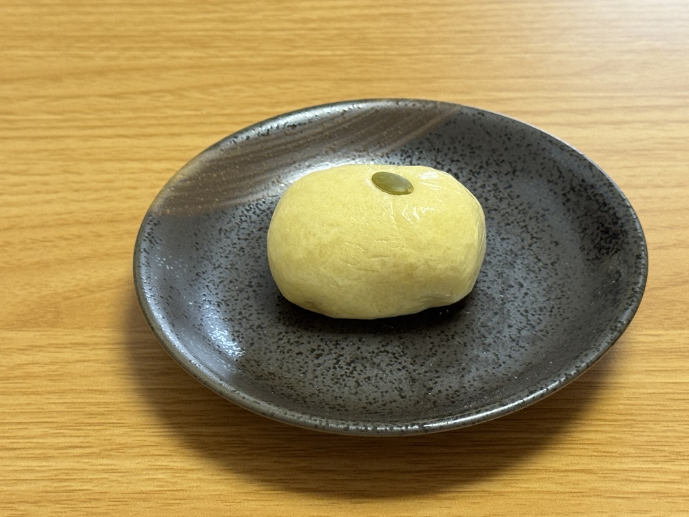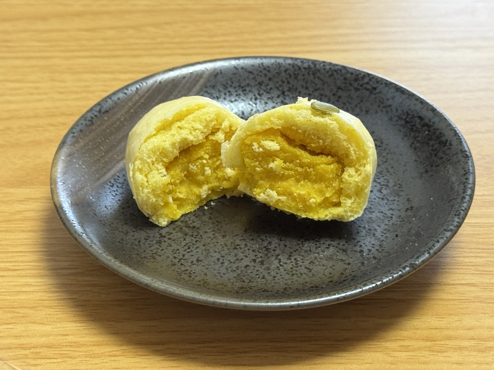 ふんわりした皮の中には、かぼちゃあんがぎっしり。かぼちゃ本来の甘みで、素朴な味わいを楽しめます。
